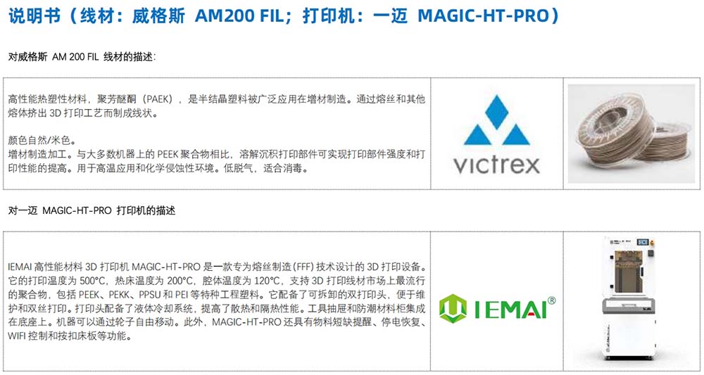 威格斯VICTREX是聚醚醚酮和聚芳醚酮聚合物解决方案的全球领导者,一迈IEMAI3D是中国提供高性能材料3D打印解决方案的厂商。2023年8月,双方正式达成合作关系,联合发布白皮书,用户可以使用威格斯针对增材制造专门优化的PEAK材料(VICTREX AM™ 200 Fil)和一迈的高性能高温3D打印机(MAGIC-HT-PRO),使得最终的3D打印制件结晶度更加统一,表观更好,Z轴抗拉强度更高(详看白皮书)。